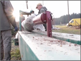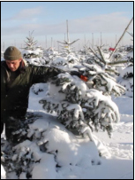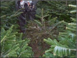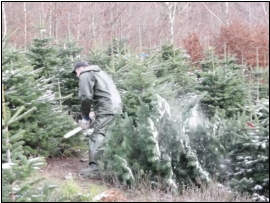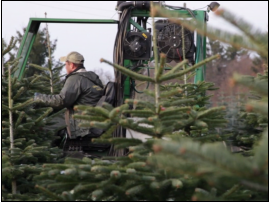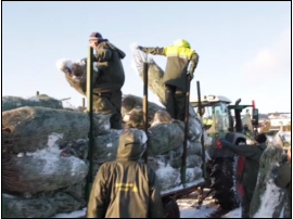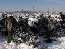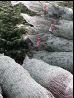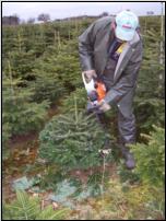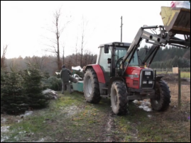 Wenn die Zeit gekommen ist werden die Weihnachtsbäume täglich gesägt, vernetzt und verladen, so dass jeden Tag frische Bäume zum