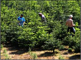 abgeschlossen haben. Dann wird mit einem Etikettiertrupp durch die Plantagen gegangen, um alle Bäume zu selektieren die entnommen