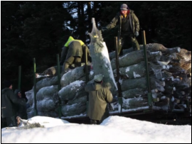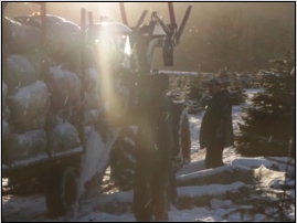 von einem Verfolger-trupp die Baumstämme zurecht gehackt. Dann müssen nur noch die Bäume von der Kultur eingenetzt und aufgeladen